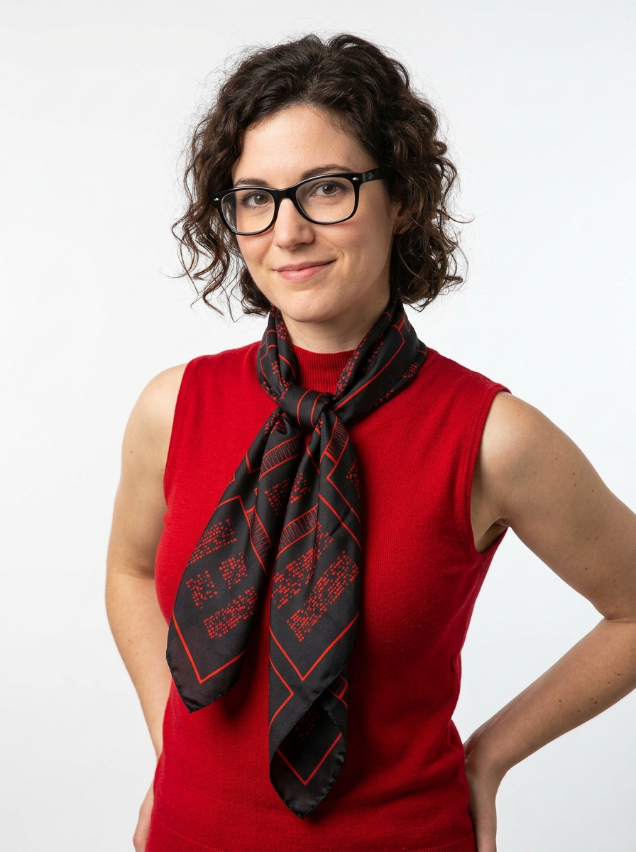 Schal aus 100 % Seide mit einem Muster, das auf der ikonischen Ästhetik der Connection Machine CM-2 basiert – einem der ersten kommerziellen KI-Supercomputer der 1980er Jahre. Entwickelt wurde die Maschine von einem interdisziplinären Team um Danny Hillis; für das prägende visuelle Design war die Künstlerin und Designerin Tamiko Thiel verantwortlich.